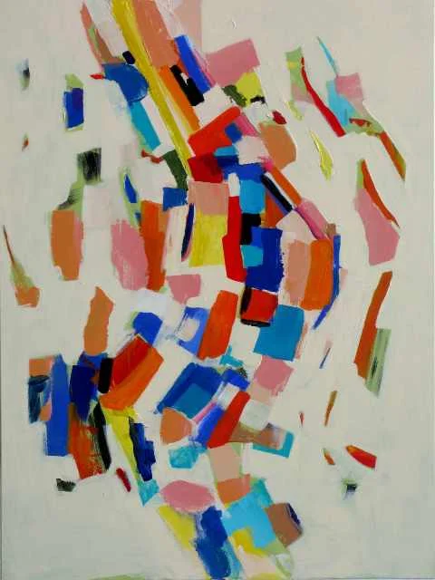 Artist Rowena Dykins swims in colour. She has immersed herself in the abstractions of colour. All the senses are evoked by her colourfields; there is a fragrance to her reds, a softness underfoot to her greens, her blues widen the eyes and her yellows are birdsong. The tangibility to her paintings is a reaching out to gather towards oneself great bushels of colour and inhale the sweet denseness of the world in all of its allness.