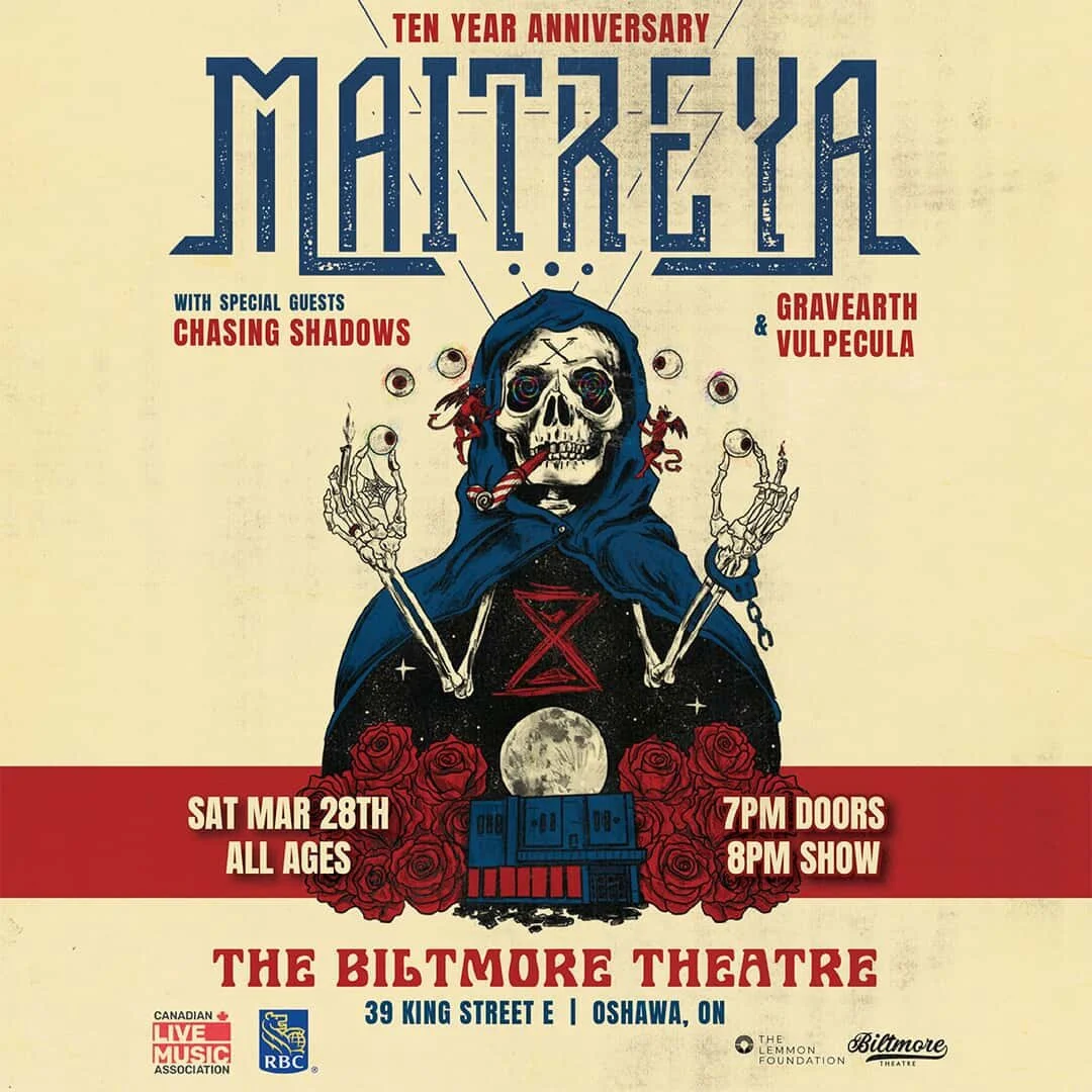 I like getting a chance to catch up with the locals, in this case Whitby prog rock metalheads Maitreya, who are celebrating ten years with a fab gig at the Biltmore Theatre Saturday Mar 28 2026. Also on the bill Chasing Shadows, Greavearth, and Vulpecula. So kats came into the shop and we can a catchup chat because one we can help spread the word and two I like when the kids drop by. And the vid they made of the chat is also fab.