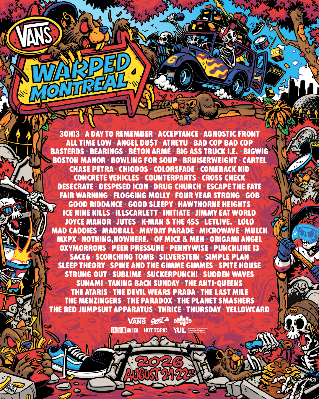 Hey when you’re on to a good thing keep it going . . . the Vans Warped Tour 2026 just dropped its Montreal line-up and its all that skate thrash gnarly punk thats been delivering it for well since 1995 when it started and my kid, the skater in the fam jam, is in his early thirties so he grew up with this and its a rad community and a rad time. When you see a school of skaters ride through town it is indeed a thing of beauty. So great to see Warped still going, I took the kid one time when Protest The Hero were on it, and anyway nice to see pals, the Anti-Queens, on the bill now.