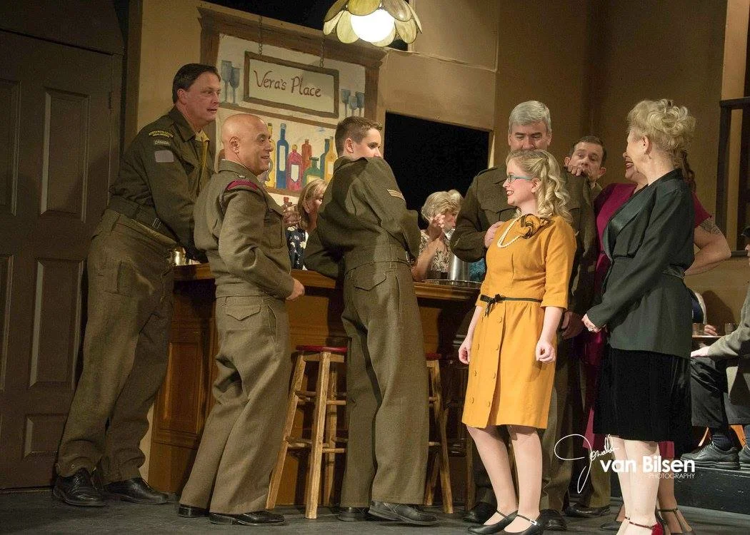 It was obvious a great deal of thought and work had gone into researching the costume design, makeup and hair of the 1940s. The uniforms of the male ensemble servicemen appear highly realistic while the dresses of the female central characters and ensemble were colourful and bright. All areas of the stage were lit appropriately when necessary.