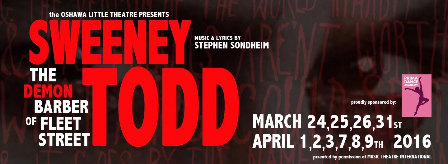 ‘Sweeney Todd’ continues at the Oshawa Little Theatre March 25 – 31 and April 1 – 9 at 8 pm with some matinee performances at 2 pm. Contact the box office at (905) 723-0282 or for further information.