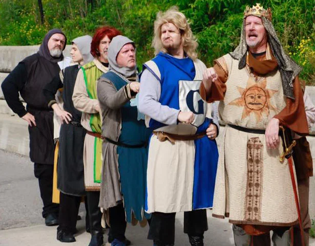 An addition to the stage version of the tale is the Lady of the Lake, the mystical being who presented Arthur with the great sword Excalibur, making him King of the Britons. In this production, she assists Arthur in his Grail quest and entertains Arthur and his knights at various places along the way, while also struggling with her desire for more on-stage time in a wink-wink nudge-nudge nod to the lack of meaty female roles in male-dominated theatre productions. Michelle Kettrick as the Lady of the Lake is the jewel in this production’s crown. Her performance is appropriately bright and glamorous, and when she sings songs like “Come With Me” and “Find Your Grail”, her powerhouse voice soars, filling the Uxbridge Music Hall with electricity. Not content to simply be a good singing voice in a musical production, Ms. Kettrick displays solid acting chops, giving us a performance that is just as goofy and silly as that of her fellow cast members, which makes her top-notch singing all the more disarming whenever she breaks into song once again.